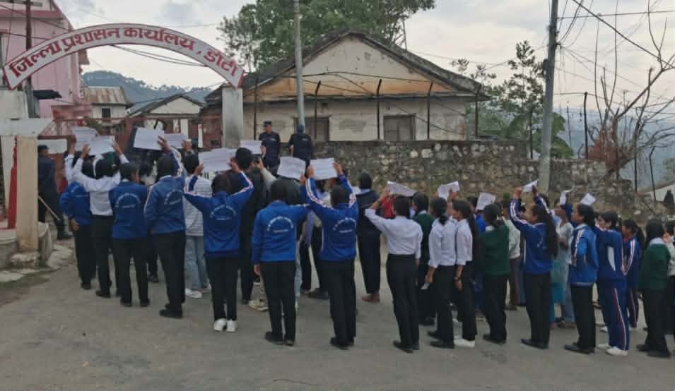डोटी । सुर्खेतमा १६ वर्षीया इनिसा विकको बलात्कारपछि हत्या गरिएको घटनाका दोषीलाई कडा कारबाहीको माग गर्दै डोटीमा विरोध प्रदर्शन गरिएको छ। स्वतन्त्र विद्यार्थी युनियन, डोटी बहुमुखी क्याम्पसको आयोजनामा आइतबार विद्यार्थीले प्रदर्शन गरेका हुन्।